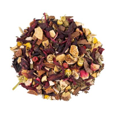 Ingrediënten : munt, kaneel, hibiscus, zoethout, gember, venkel, sinaasappelschil, kruidnagel, kamille, roze peper, kardemon