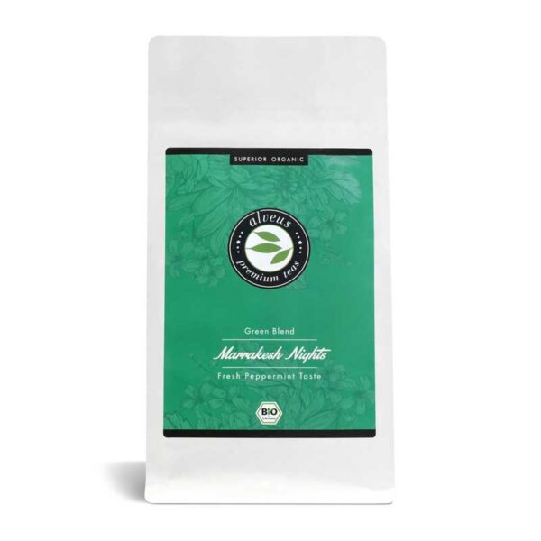 Groene thee met pepermuntsmaak. Verkwikkende nuances met een frisse en lang aanhoudende muntsmaak.